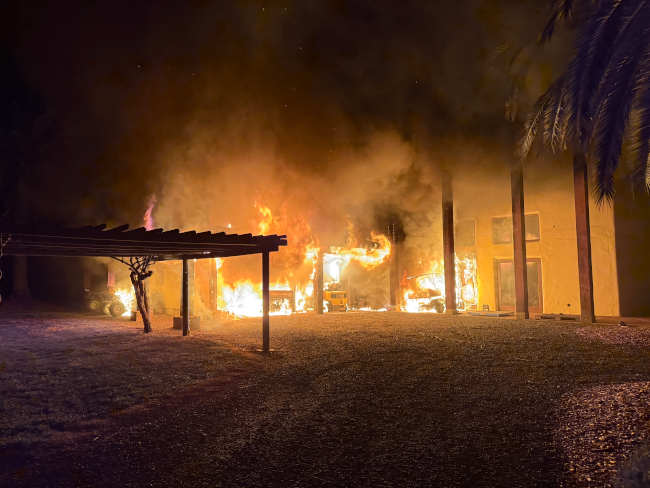 A fire damaged the “shop” building at Ceago Vinegarden in Nice, California, on the night of Tuesday, March 25, 2025. Photo courtesy of Jim Fetzer.