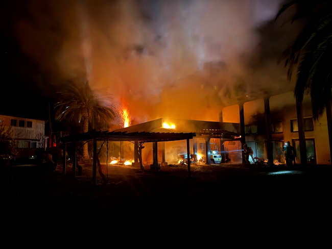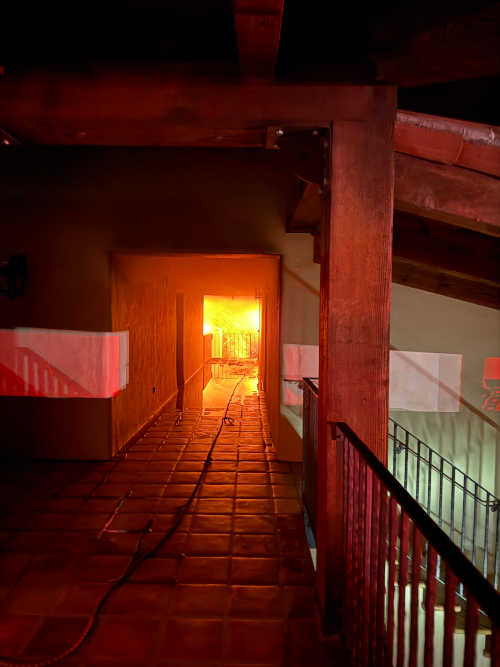 A view of the fire down a hallway at Ceago Vinegarden in Nice, California, on the night of Tuesday, March 25, 2025. Photo courtesy of Jim Fetzer.