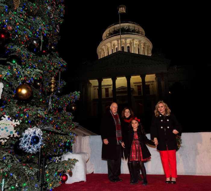 This year, the governor and first lady lit the Capitol Christmas tree with 7-year-old Sofia Garcia of Los Angeles.