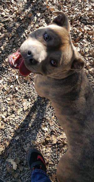 “Clyde” is a male pit bull terrier mix. Photo courtesy of Clearlake Animal Control. ‘Clyde’