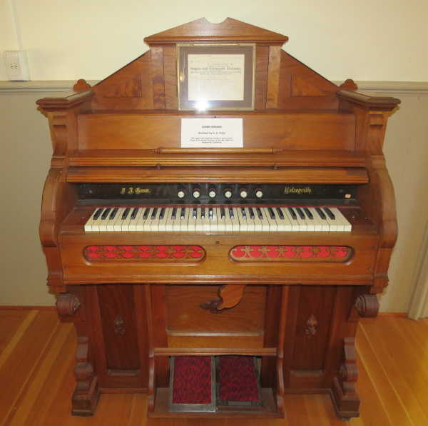 The Gunn Organ, one of which was donated to the historic Courthouse Museum in Lakeport by A. G. Fultz, was made by James A. Gunn, who had an organ factory called Gunn Organ and Furniture factory in the late 1800s in Kelseyville.