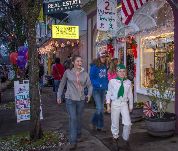 The town looks festive with decorated merchant storefronts and business-sponsored Christmas trees that are decorated by area schoolchildren.