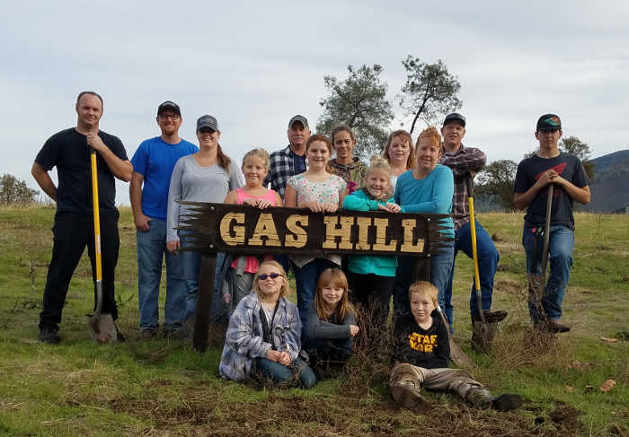 On Saturday, November 25, 2017, Big Valley 4-H members planted daffodil bulbs in Kelseyville, Calif. Pictured from, left to right, back row, Mark Marek, Darrin Knight, Bonna Preston, Tim Brown, Crystal Johnson, Michelle Brown, Carson Holden Reid and Evan Holdenried; middle row, Jayden Preston, Katey Brown, Payten Preston and Sarah Nave; front row, Jessica Mulka, Ceci Knight and Andrew Nave. Not pictured (taking photo): Marilyn Holdenried. KELSEYVILLE, Calif. – Spring is months away, but local 4-H members are making sure there will be plenty of beautiful flowers to enjoy when it arrives.