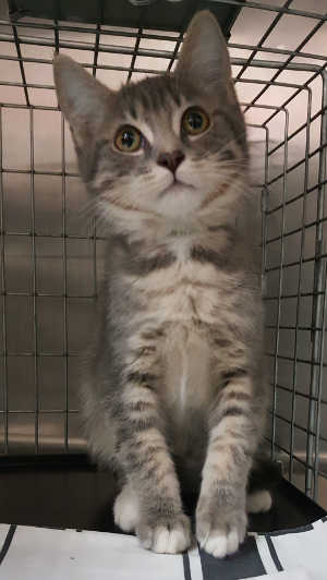 This male gray tabby kitten is in kennel No. 133a, ID No. 8770. Photo courtesy of Lake County Animal Care and Control. Gray tabby kitten