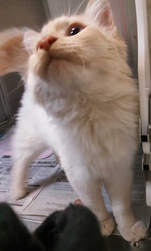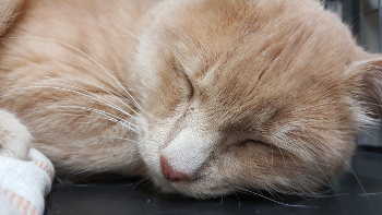 “Sweet Tart” is a male domestic short hair with an orange tabby coat.