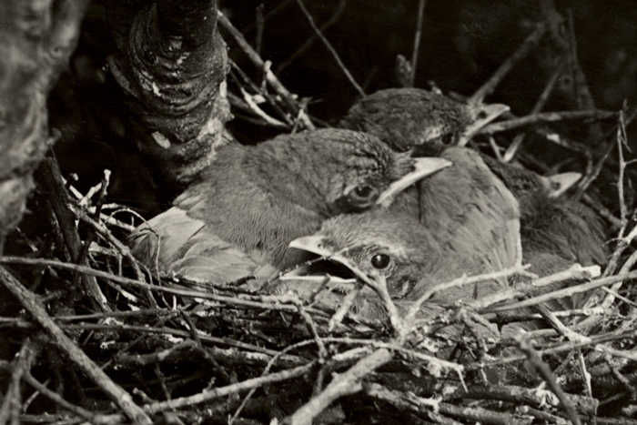 California scrub jay nestlings in Berkeley, May 20, 1921. A new study compared nesting data from the early 1900s to similar data today and found that California birds are nesting earlier to avoid warmer weather. Photo courtesy of UC Berkeley's Museum of Vertebrate Zoology.