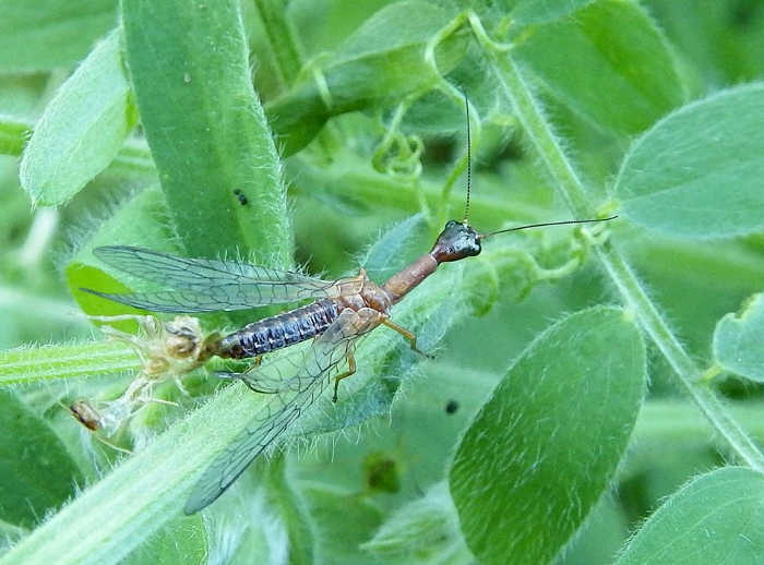 The snake fly’s most identifying features are its long prothorax (that part of an insect between the head and the abdomen that usually hold the first pair of legs) and its two wings which are heavily veined like a dragonfly’s wings.
