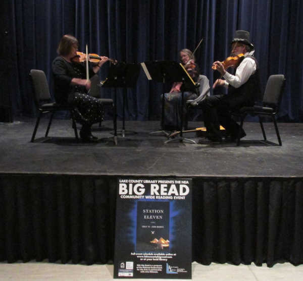 Sue Condit, Judith Mayorga and Greg Bushta from the Lake County Symphony were among the local performers who presented the Big Read’s Traveling Symphony event at the Soper-Reese Theatre in Lakeport, Calif. Courtesy photo. LAKEPORT, Calif. – The Lake County Library’s Big Read for 2017 has wrapped up its month-long series of events that explored the themes of the Big Read novel, “Station Eleven,” by Emily St. John Mandel.