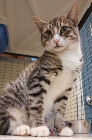This male domestic short hair is in kennel No. 153, ID No. 8727. Photo courtesy of Lake County Animal Care and Control. Male domestic short hair