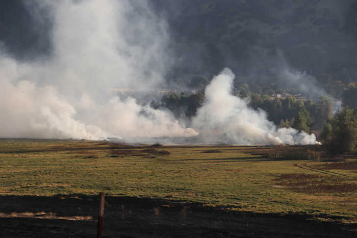 The fire was at that time on both sides of Sulphur Bank Road around the Elem Colony. He said it moved up the hill and extended up the road to the split at Sulphur Bank Road and North Drive.