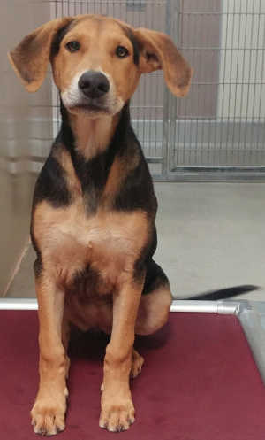 This male cattle dog-hound mix is in kennel No. 31, ID No. 8462. Photo courtesy of Lake County Animal Care and Control. Cattle dog-hound mix