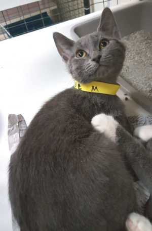 This male domestic short hair kitten is in kennel No. 131g, ID No. 8279. Photo courtesy of Lake County Animal Care and Control. Domestic short hair kitten