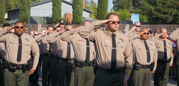 There, dozens of deputy sheriffs and command personnel, as well as members of other agencies including the Lakeport Police Department, stood at attention between two lines of Clear Lake High School football players wearing their red jerseys.