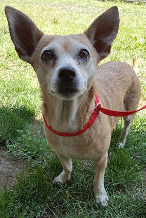 “Sachi” is a female Chihuahua with a short tan coat.