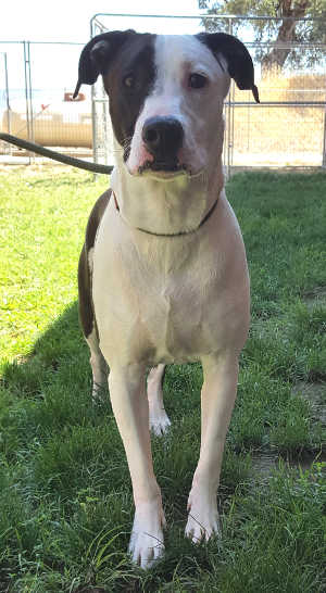 This young male pit bull terrier is in kennel No. 19, ID No. 8212. Photo courtesy of Lake County Animal Care and Control. Pit bull terrier