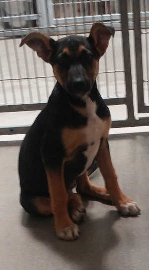 She has a short black and tan coat.