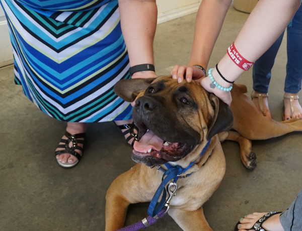 Gelato the Italian Mastiff gets some love from friends during his visit to Lake County Fire Protection District’s Station 65 in Lower Lake, Calif., on Sunday, August 13, 2017. Photo by Elizabeth Larson/Lake County News.