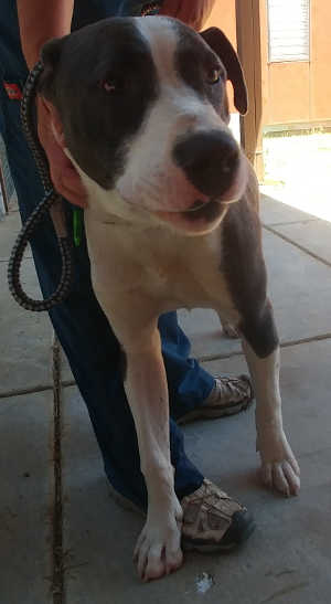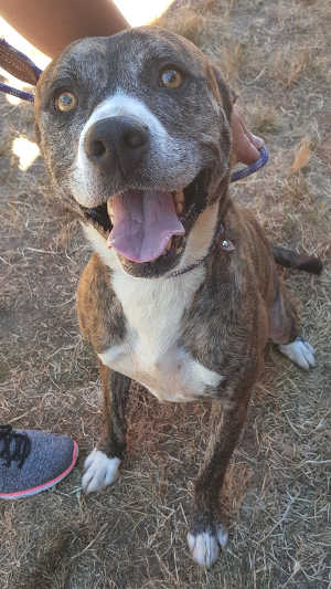Shelter staff said she gets along with dogs of any size. She shows no interest in cats but they say caution should be used with introductions.