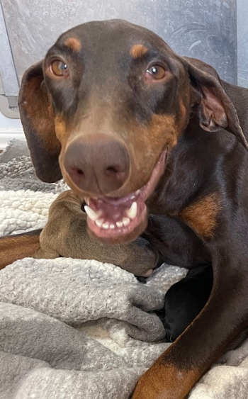 This week’s dogs include “Shayla,” a 2-year-old female Doberman pinscher mix with a chocolate and beige coat.