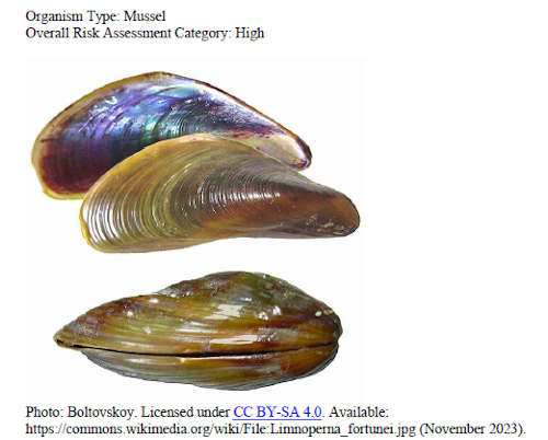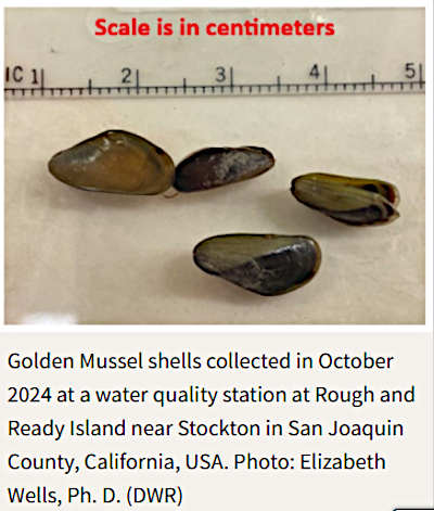 Mussel specimens were sent to UC Davis Genomic Variation Laboratory and confirmed to be golden mussels, originally from China and Southeast Asia; the species had not previously been detected in North America.