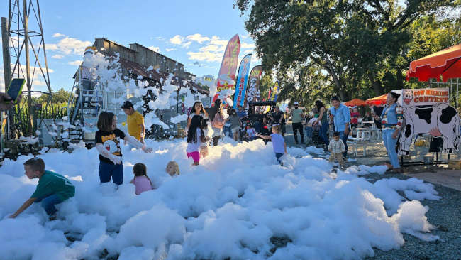 Sunflowers stood tall, guarding the trails around the corn maze. In the pizza garden, tomatoes and peppers quietly thrived under the care of the students. Sprinklers worked diligently, watering the soil and occasionally giving passersby an unexpected shower. Children dashed into the sea of bubbles blown from the foam daddy machine.