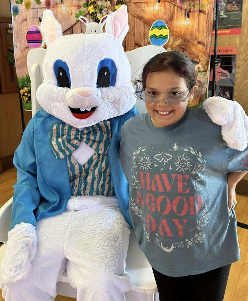 The Bunny Brunch includes waffles, eggs and sausage, with juice or milk.