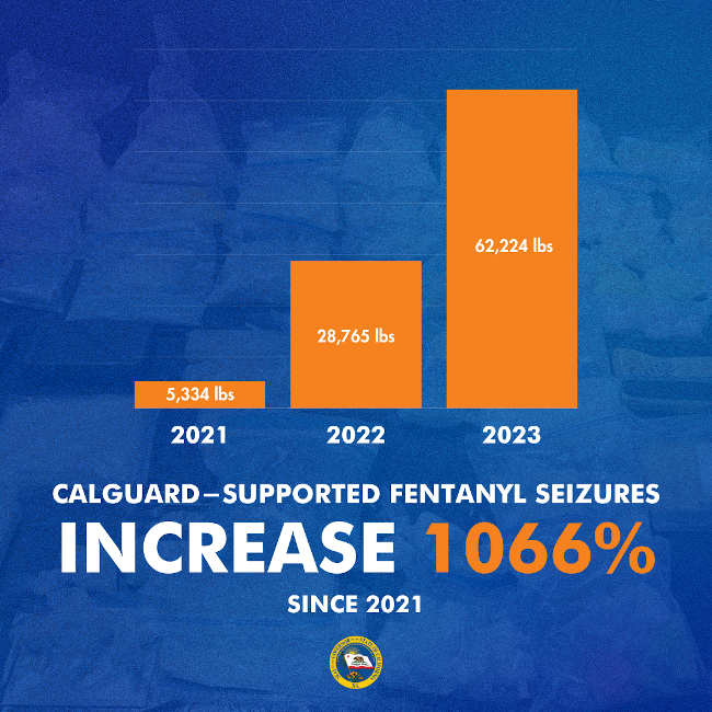 Since 2021, fentanyl seizures supported by CalGuard have increased by 1066%.