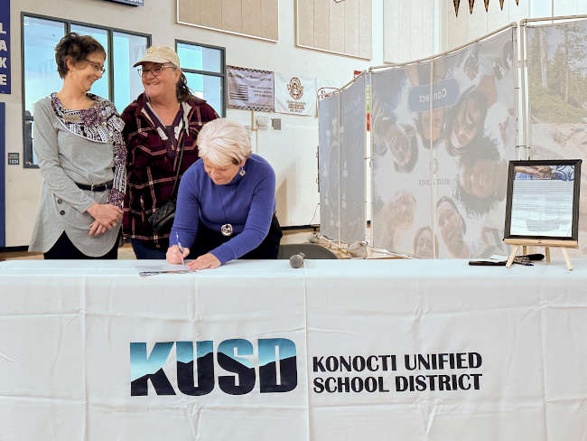 Surrounded by board members and leaders, Salato signed the Blue Zones Worksite Certification Pledge, which signifies Konocti Unified’s commitment to implement the strategies outlined in the blueprint.