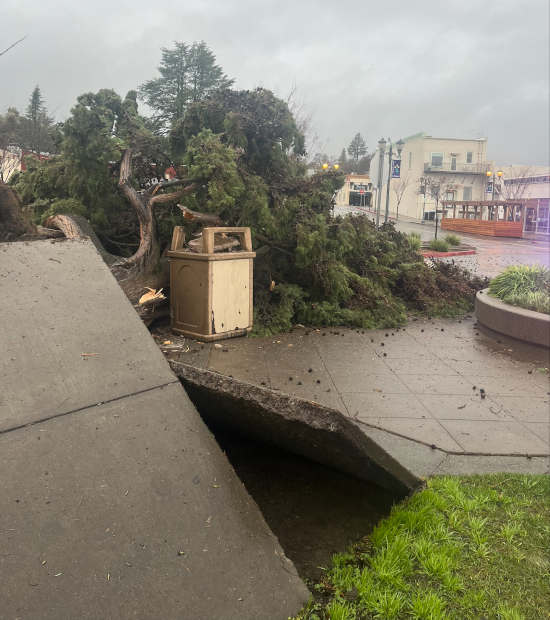 • Park Street from Second to Third streets, Lakeport: Damage from a downed treet.
