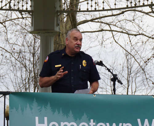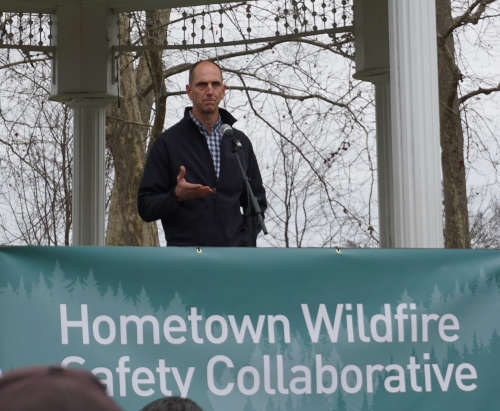 An event to celebrate the collaboration’s launch was held outside, at the Library Park gazebo, during an unseasonably warm Friday afternoon to announce the launch of the Hometown Wildfire Safety Collaborative .
