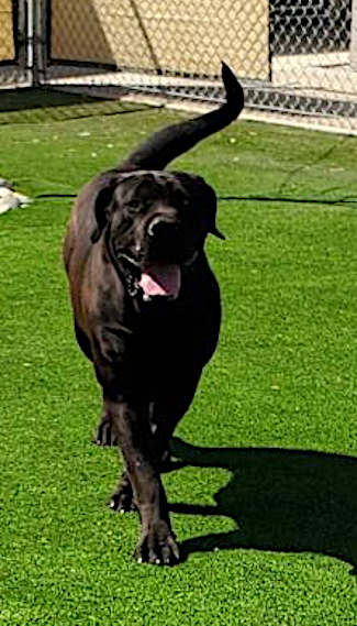 The adoptable dogs include “Panther,” a male mastiff mix with a black coat.