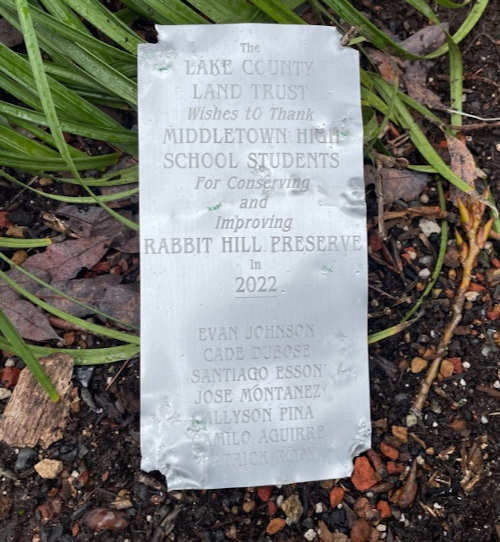 Beginning in 2022 several Middletown High School students have been conducting their community service hours at Rabbit Hill with pruning, trash collection and erecting a very fine directional post that points to the mountain peaks visible from the hilltop.