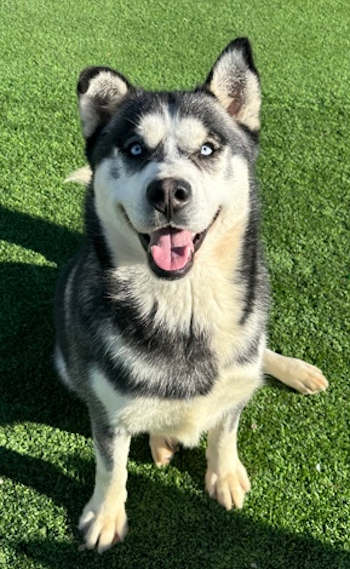 Also available is “Boo,” a male Alaskan husky mix with a gray and tan coat.