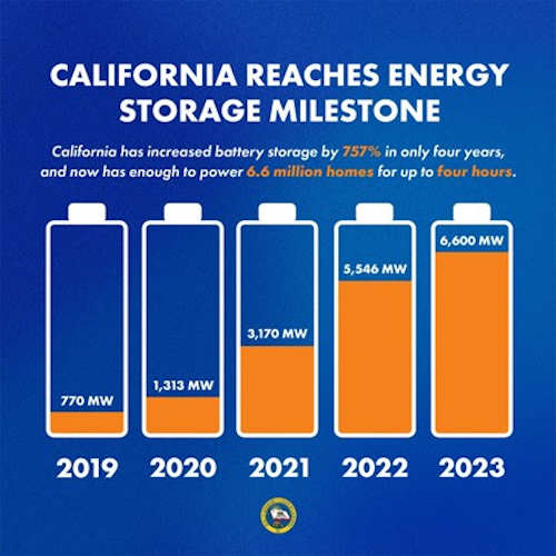New data show California has built out more than 6,600 megawatts, or MW, of battery storage, enough electricity to power 6.6 million homes for up to four hours.