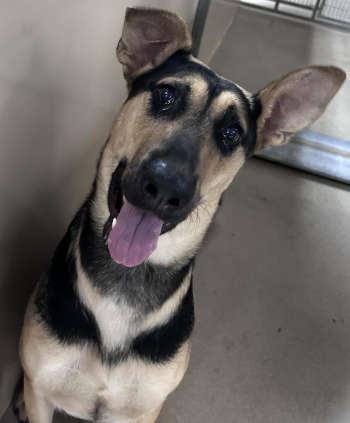 The adoptable dogs also include a 1-year-old female shepherd mix with a tan and black coat. She is in kennel No. 26, ID No. LCAC-A-6104.