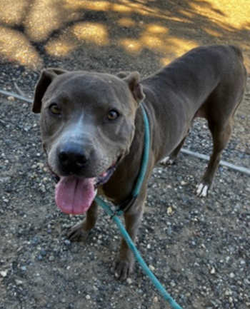 This week’s new dogs include “Smiley,” a male pit bull mix with a gray coat.