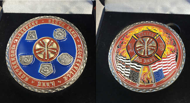 The colorful medal is larger than most, which Sapeta said was necessary in order for it to clearly show the details of the patches of all five Lake County fire districts: Kelseyville Fire, Lake County Fire, Lakeport Fire, Northshore Fire and South Lake County Fire.