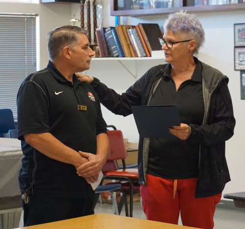 On Wednesday afternoon, during the Lake County Fire Protection District’s regular board meeting, Chief Willie Sapeta presented the new Fire Chiefs Challenge Medal to Robert Lombardi.