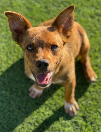 This week’s new dogs include “Goose,” a male Chihuahua mix with a short brown and brindle coat.