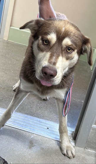 This 4-year-old male Siberian husky has a brown and tan coat.