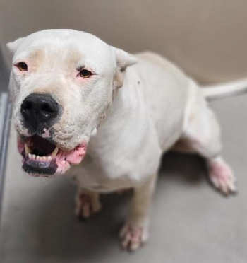 This 3-year-old female Dogo Argentino has a short white coat.