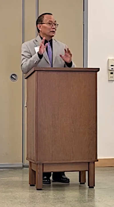 He shared his experiences growing up in China. His father was the only one in the family who had a college degree, and because he had been dubbed an anti-communist, his children struggled to get an education.