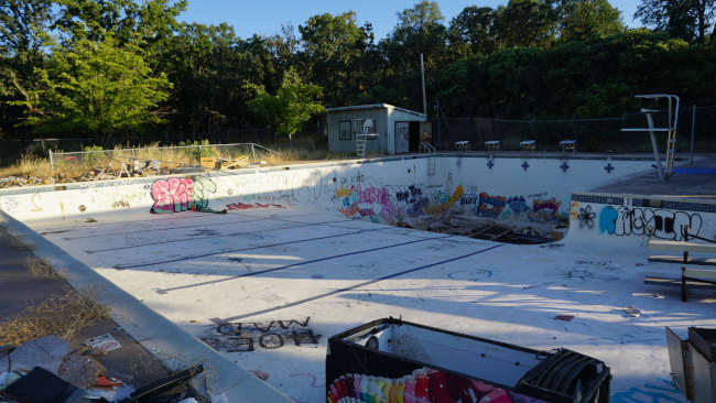Now, after years of languishing empty and vandalized, the pool is expected to be removed very shortly.