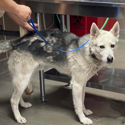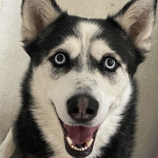 “Nova” is a 2-year-old female husky with a black and white coat.