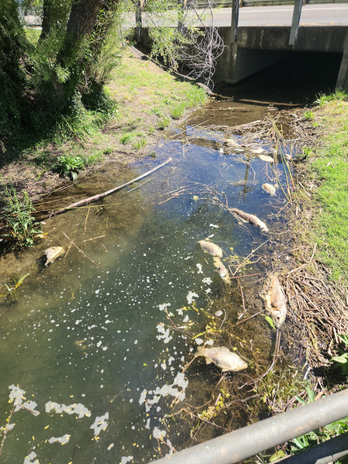 Next time you see one dead fish, look around and see if you see any more. Note if they are the same size or the same species. Submit a report to the CDFW mortality lab here, or you can call the CDFW mortality lab at the State Wildlife Health Lab, 916-358-2790.