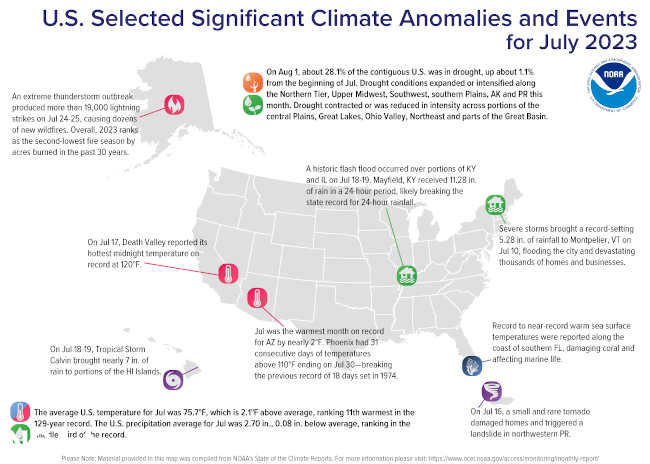 July 2023 was a hot and stormy month for the U.S., with flooding rain and scorching temperatures impacting much of the nation.