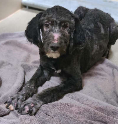 This 2-year-old male poodle has a black coat.