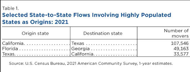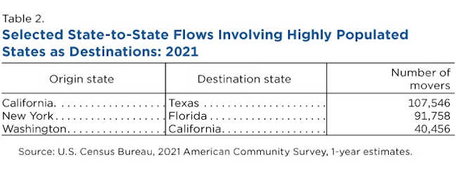 Highly populated states, including California, Texas and Florida, experienced some of the largest state-to-state flows.