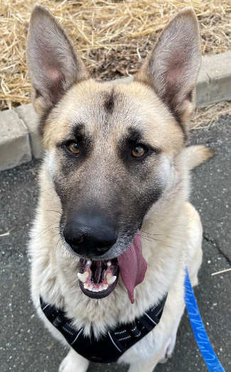 “Sky” is a 1 and a half year old female German shepherd with an all-white coat.