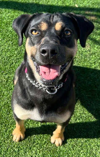 Dogs available to new families this week include “Tink,” a 2 year old Doberman Pinscher mix that shelter staff describe as a “total love bug” who wants all the attention she can get.